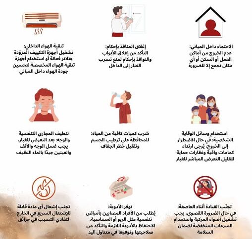 إرشادات الوقاية من الرياح الخماسينية المغبرة والعاصفة الرملية التي تضرب لبنان